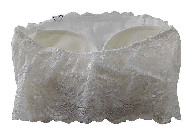【チューブブラジャー】Sサイズ|オフホワイト|ノンワイヤー|レース素材|ズレにくい|カップ下パネル付
