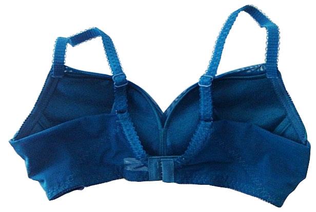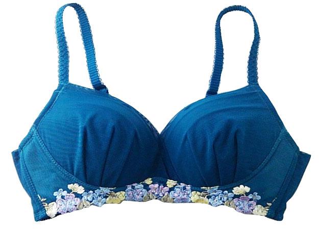 【ブラジャー】B75サイズ|ティールグリーン|ノンワイヤー|肩紐調節可|アンダー花柄刺繍|カップシフォン