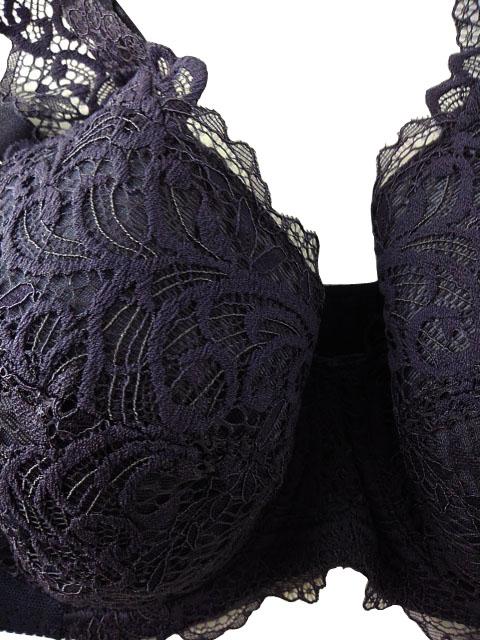 【ブラジャー】G95サイズ|ミッドナイト|ワイヤー入り|胸元レース|肩紐調節可|肩紐前レース|脇メッシュ