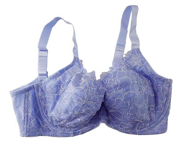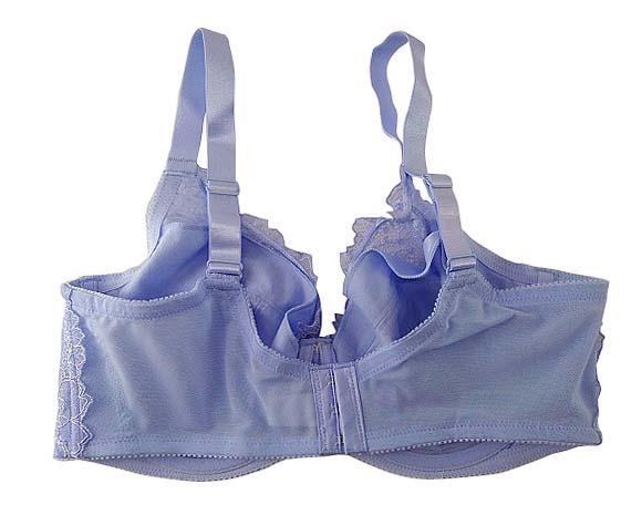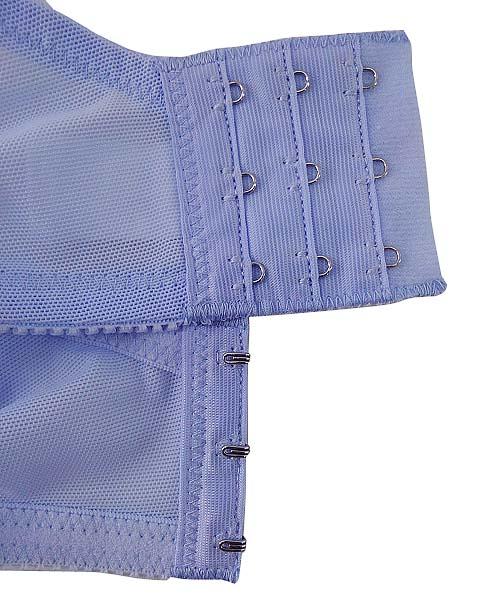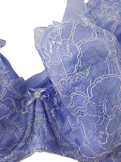 【ブラジャー】F85サイズ|プラシッドブルー|ノンワイヤー|花柄刺繍|肩紐調節可|胸元レース|脇メッシュ|谷間リボンパールビーズ